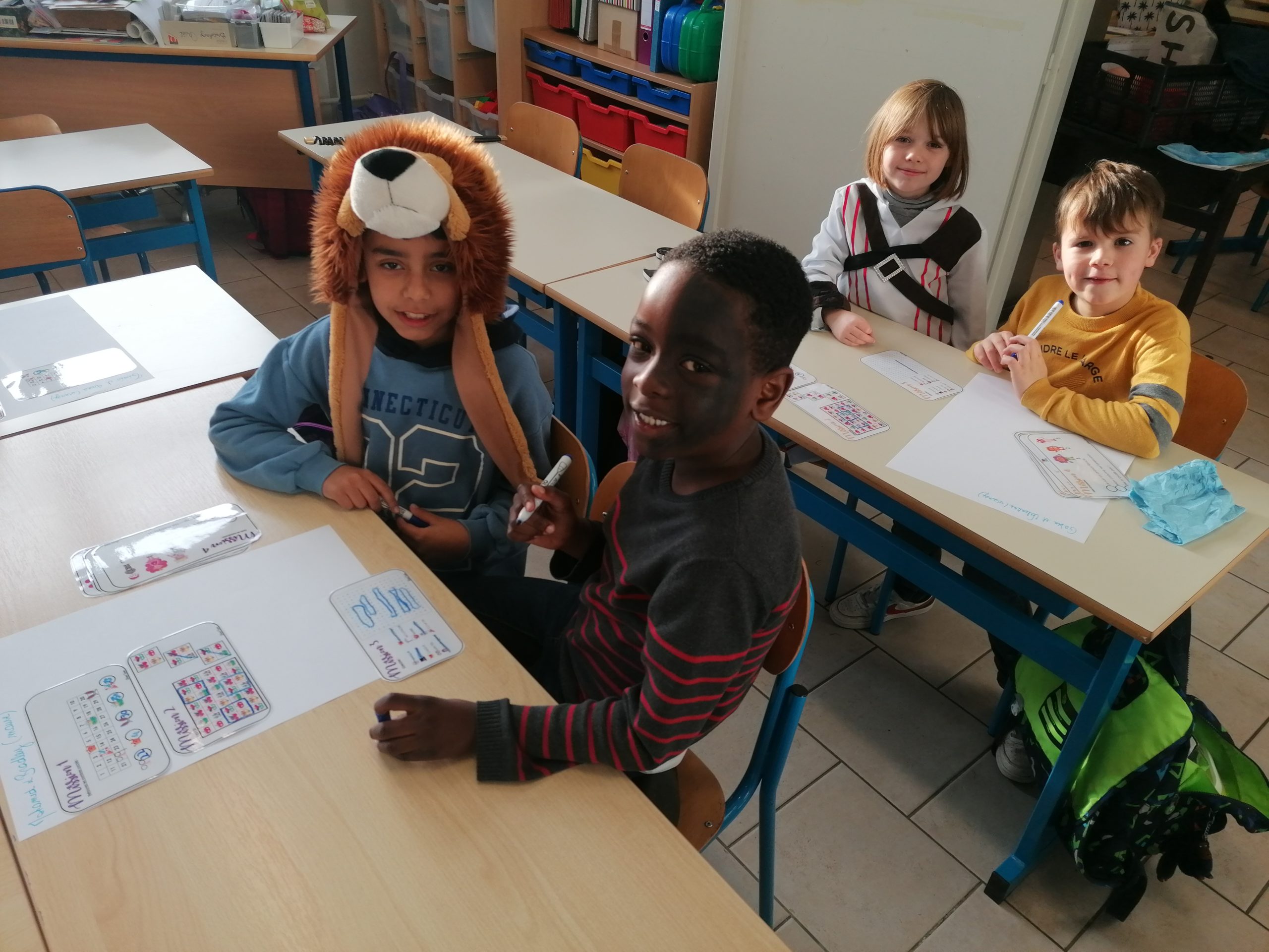 Les élèves de P4 ont réalisé un masque d’Arlequin pour le carnaval.