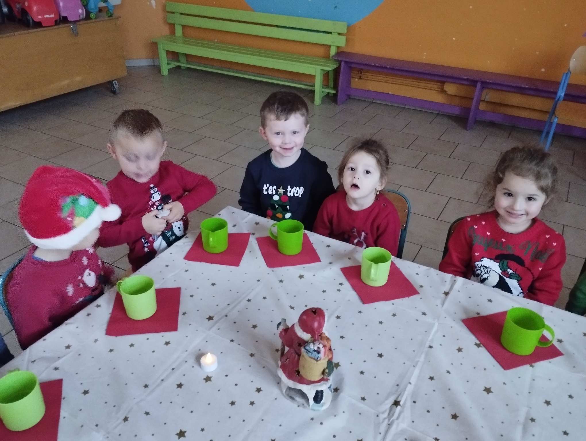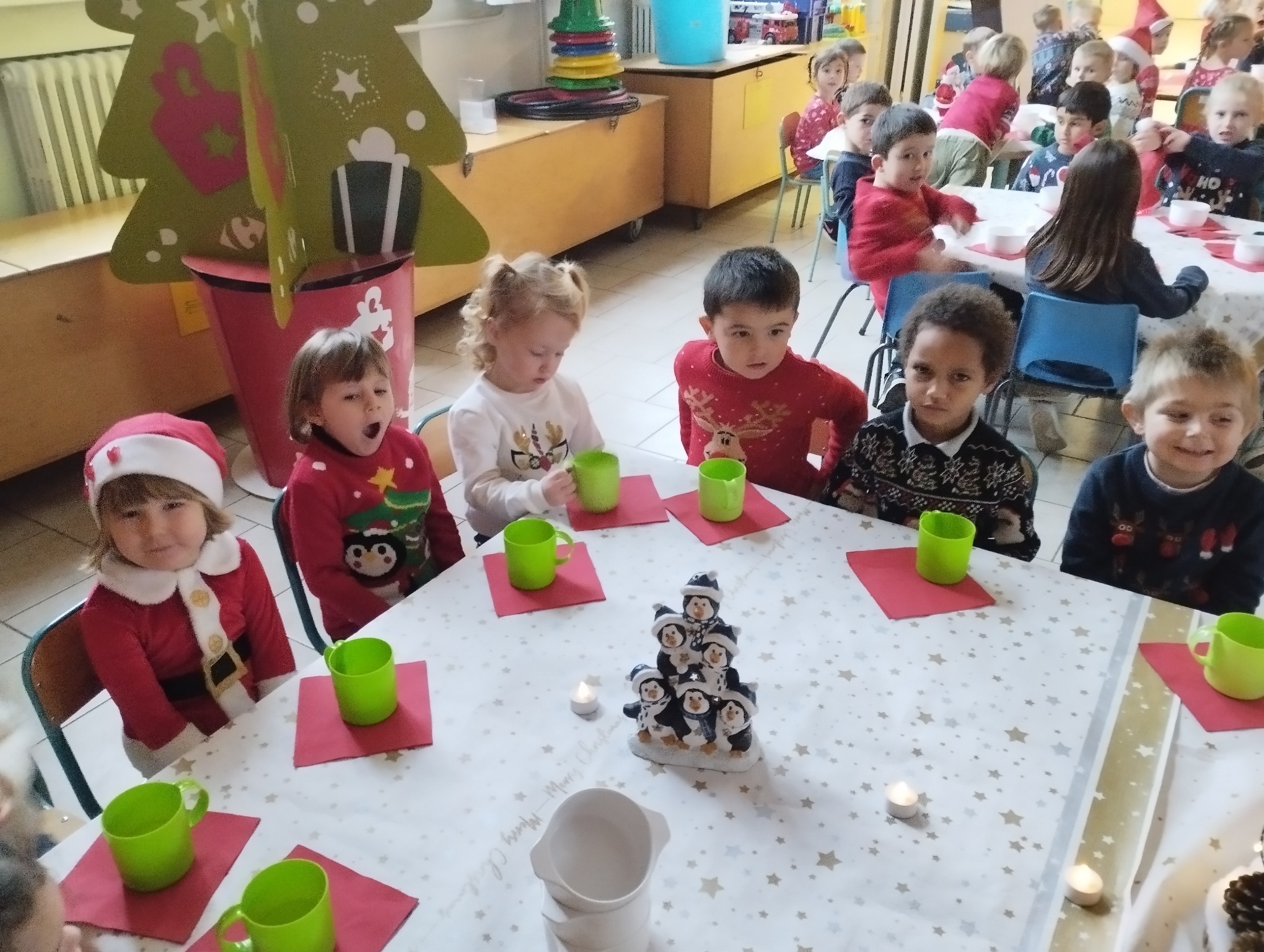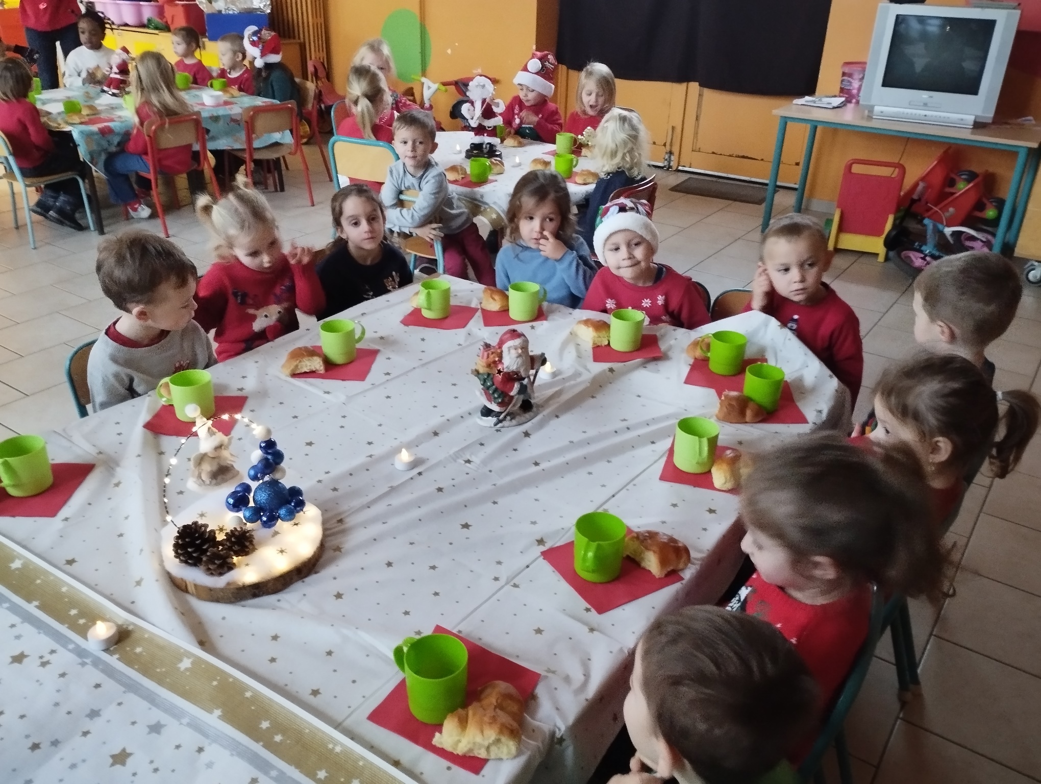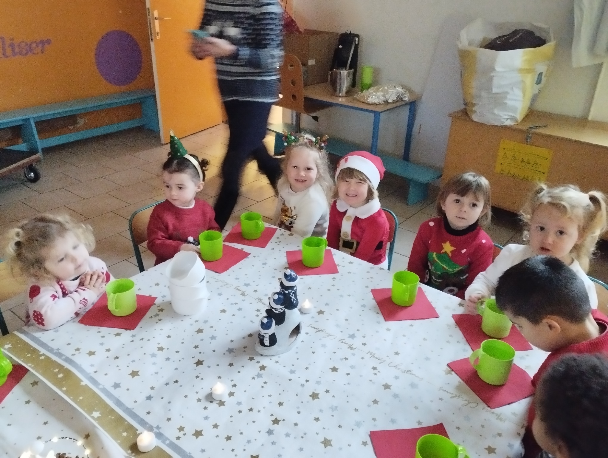 Le déjeuner de Noël de la classe d’accueil et de 1e maternelle.