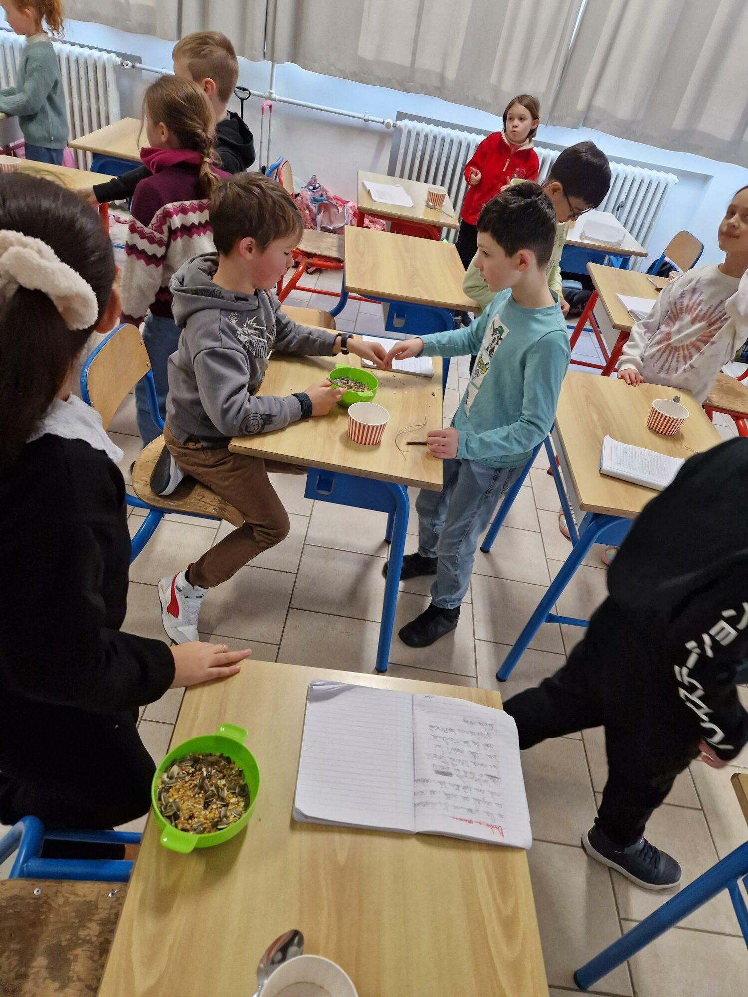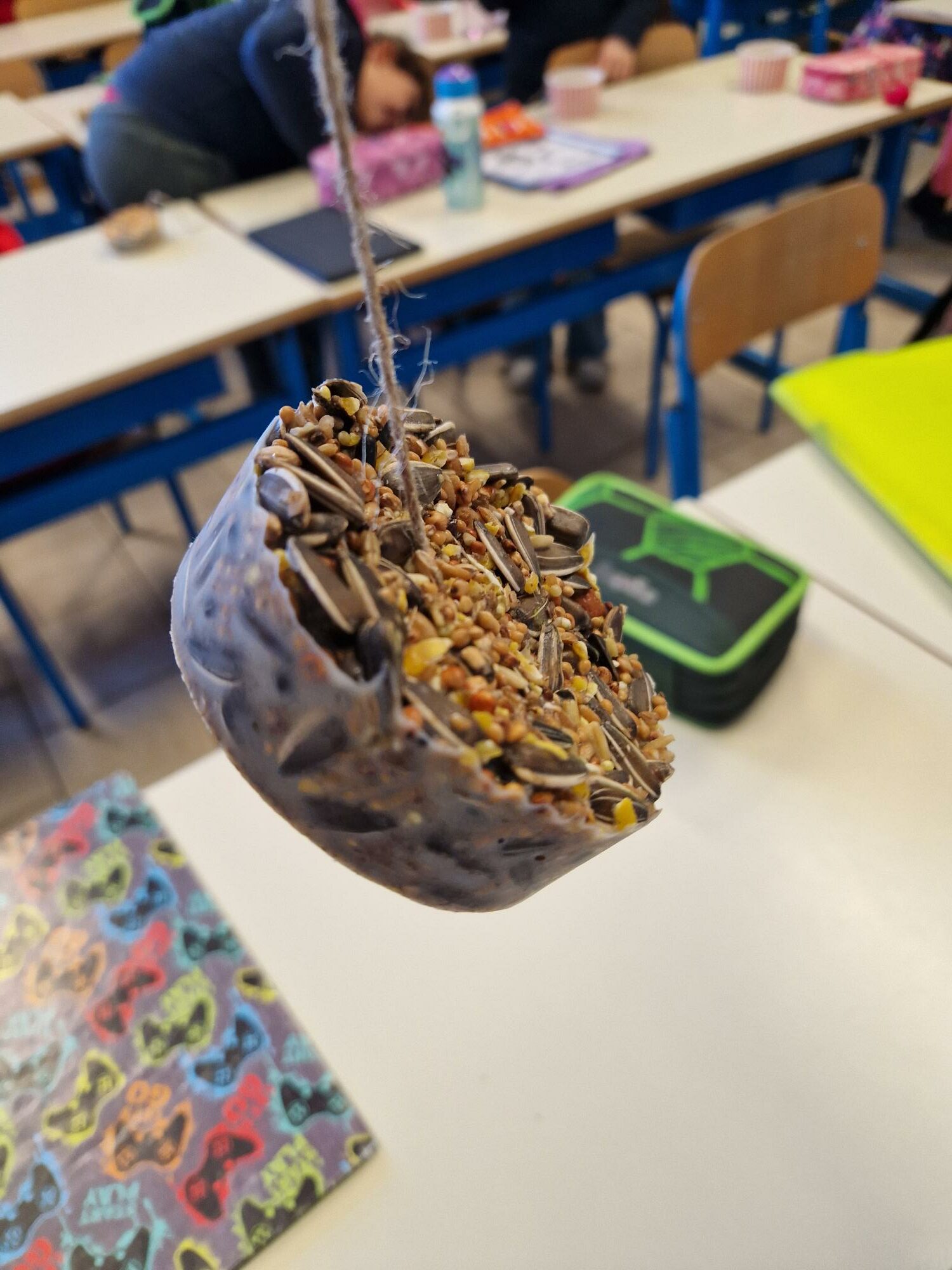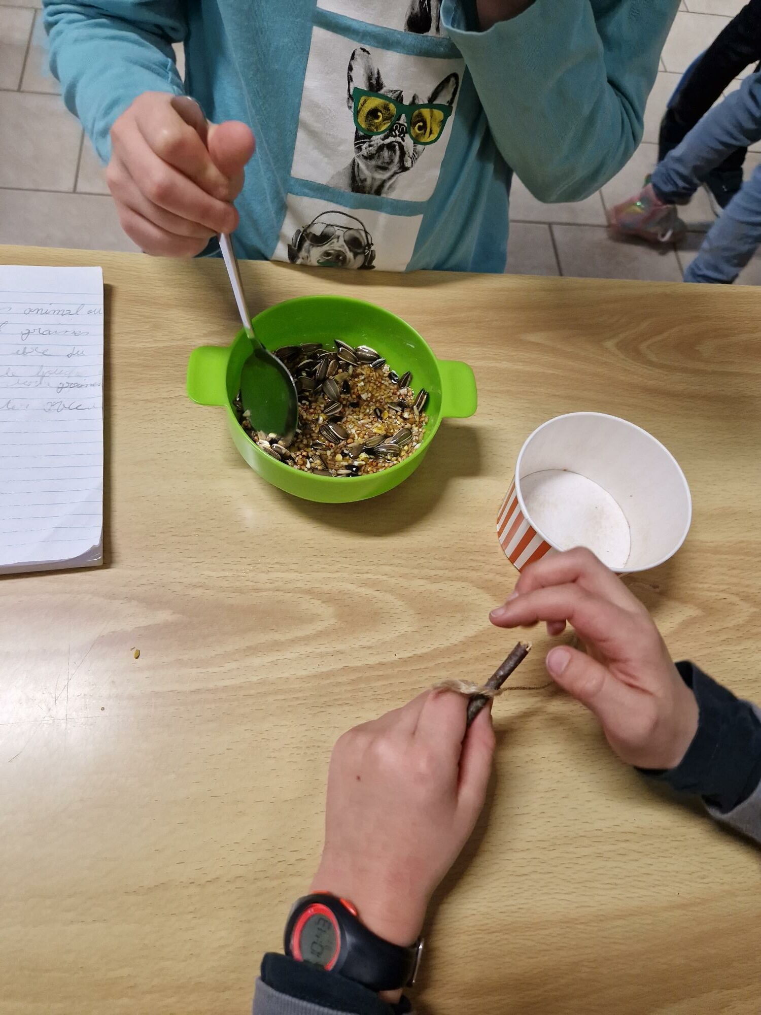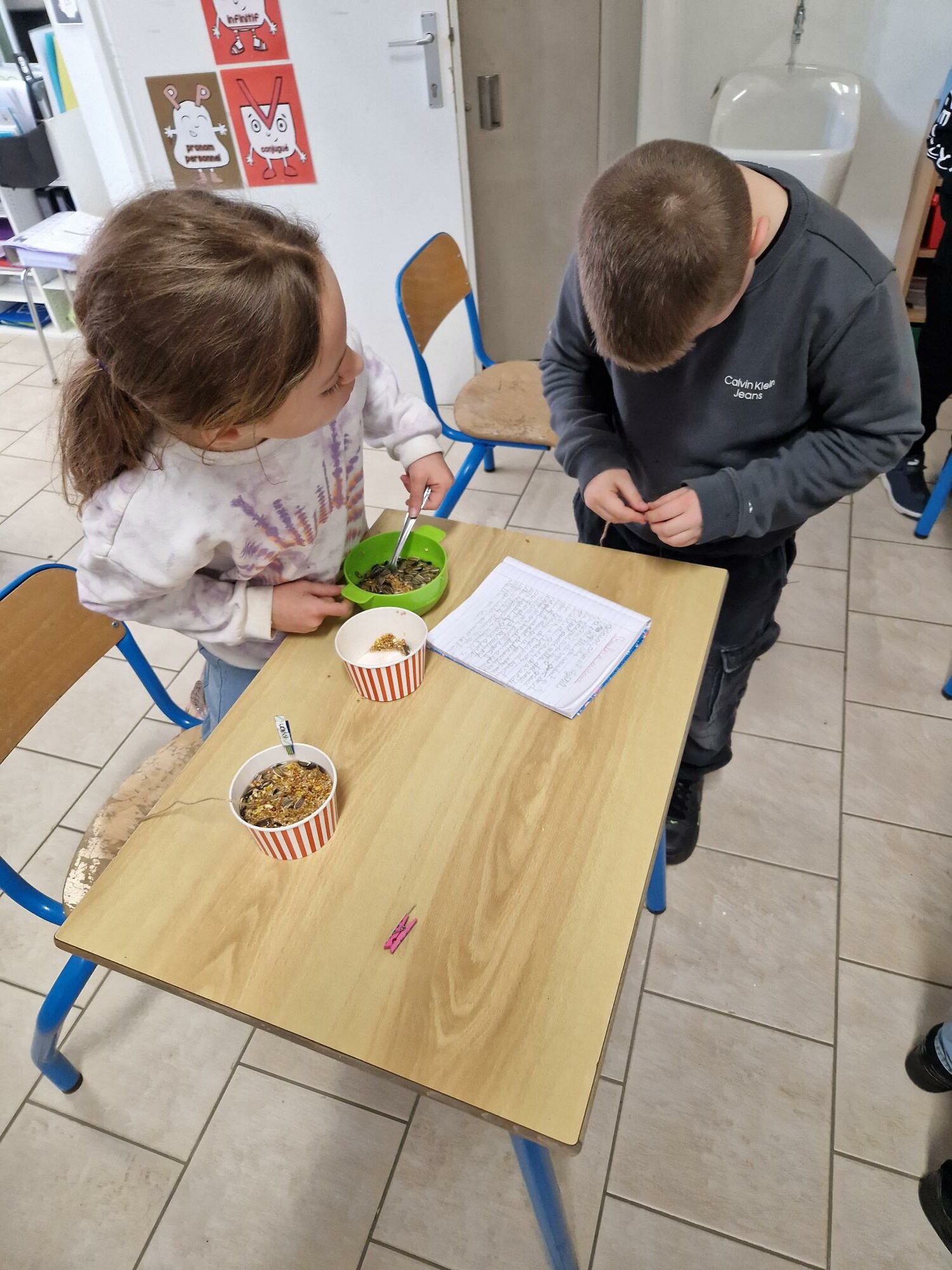 Les P3 ont réalisé des boules de graines pour les oiseaux.