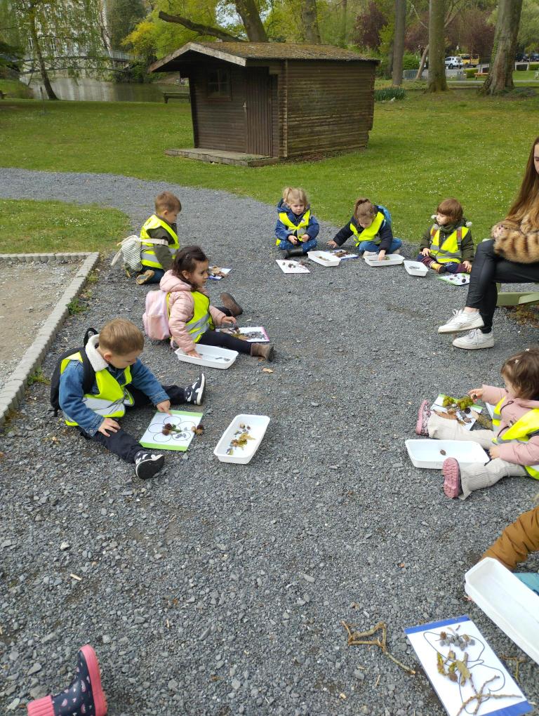 Les élèves de 1e maternelle en Classe nature